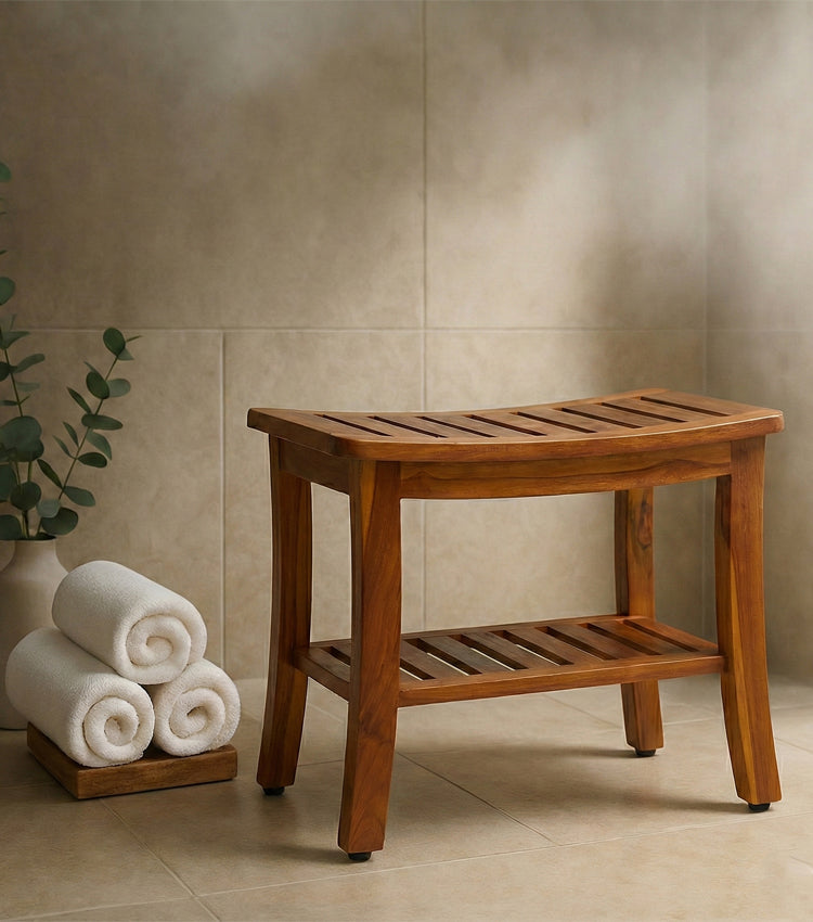 The THEIA, Teak Shower Bench, Shower Stool, 21 Inch